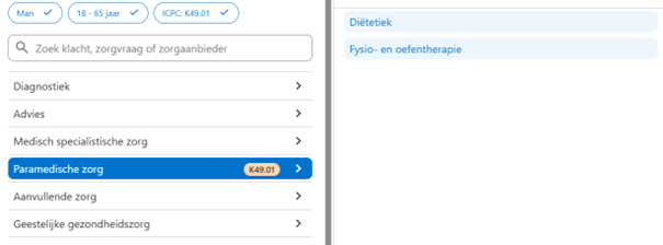 - Ga naar Zorgdomein naar Paramedische zorg -> Diëtetiek
