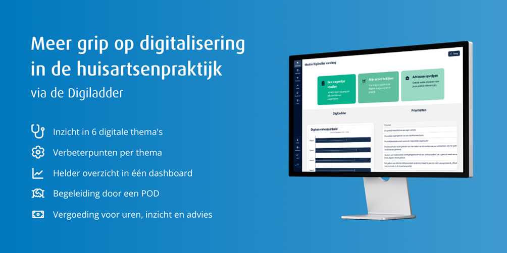 Met de Digiladder brengt u in stappen structuur aan in de ontwikkeling naar een volwassen ict-omgeving. Het doel is om samen te werken aan een veilig en betrouwbaar digitaal netwerk in en rond de praktijk, dat zorgverleners met elkaar verbindt en patiënten beter toegang geeft tot hun medische informatie.